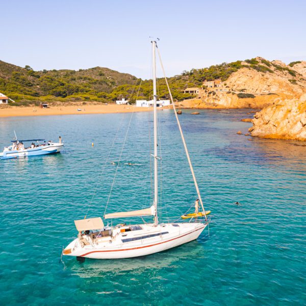 Zarpamos a las 10h desde el puerto de Fornells y navegamos hacia donde el viento nos guíe. Refréscate, haz una excursión en paddle surf, explora la fauna marina o toma el sol dónde y cuándo tú quieras. Nosotros te ofreceremos un aperitivo con productos típicos de Menorca y bebidas frías. Relájate y disfruta de tu tiempo. No dudes en preguntar todas las curiosidades sobre la isla, el mar, la fauna marina y la navegación a vela al patrón.